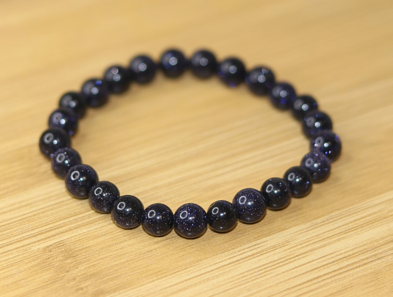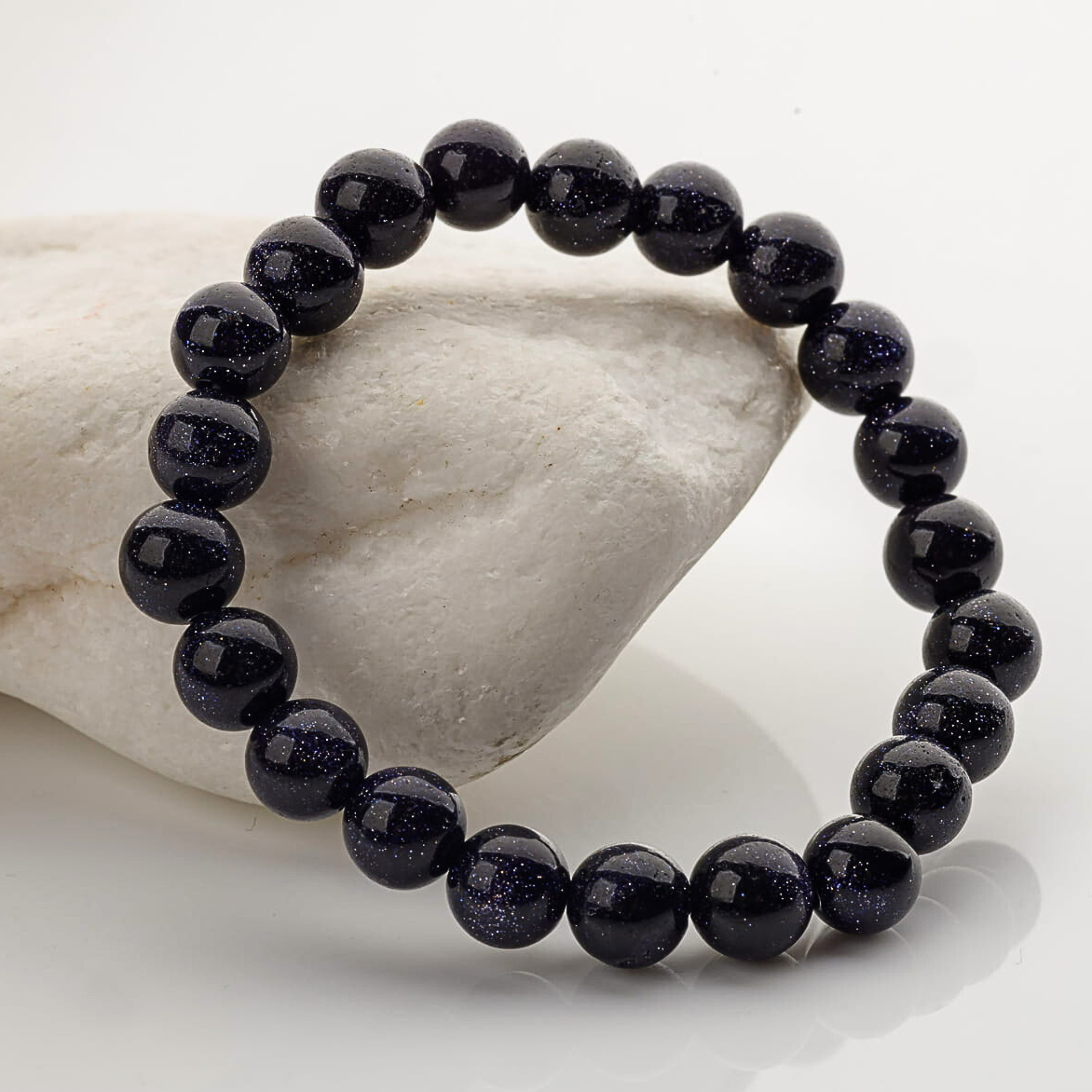 Bransoletka z kamienia noc kairu to elegancki dodatek o niepowtarzalnym, głębokim granatowym kolorze z delikatnym połyskiem przypominającym rozgwieżdżone niebo. Wykonana z idealnie oszlifowanych koralików nawleczonych na elastyczną gumkę, świetnie dopasowuje się do nadgarstka i pasuje do każdej stylizacji – codziennej lub wieczorowej.