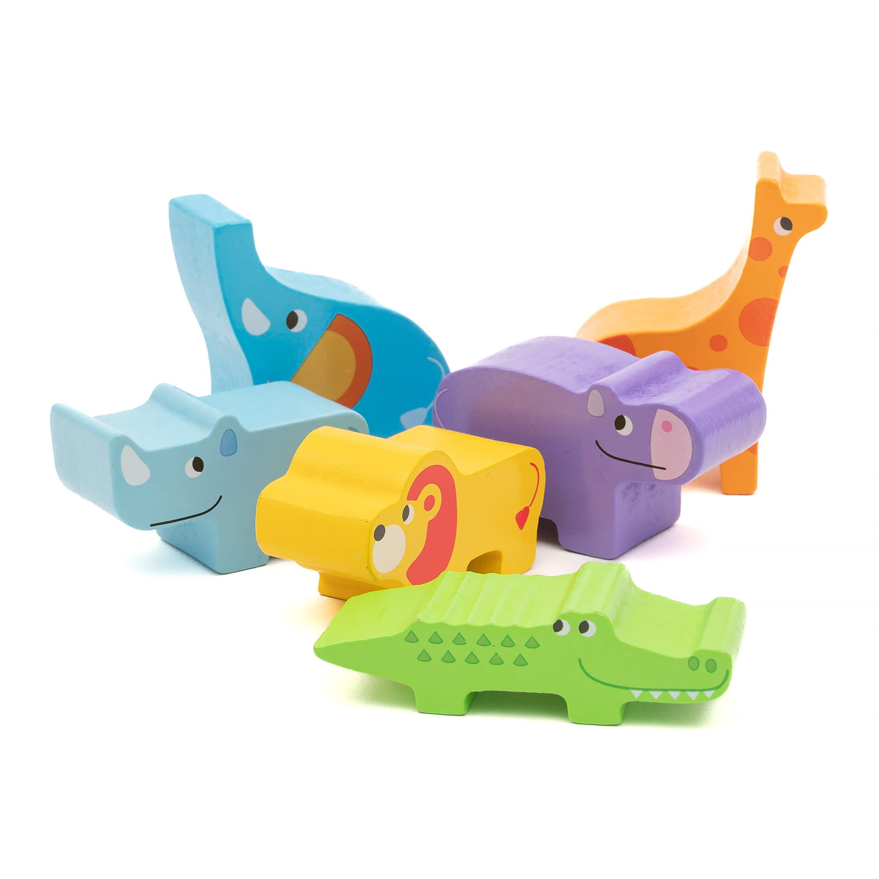 12x drewniane, kolorowe zwierzątka
