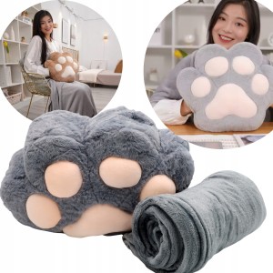 Koc z poduszką termofor 3W1 kocia łapka maskotka pluszak 45 CM