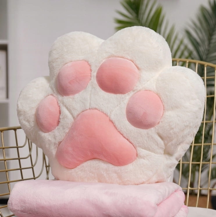 PODUSZKA KOCIA ŁAPKA Z KOCEM, TERMOFOR 3w1 – BIAŁA – MIĘKKA I PRZYTULNA 45cm