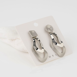 Stylowe, geometryczne kolczyki w kolorze srebra to idealny wybór dla kobiet ceniących modny i nowoczesny styl. Ich abstrakcyjna forma i efektowny połysk sprawiają, że świetnie komponują się zarówno z eleganckimi stylizacjami, jak i z codziennym outfitem.