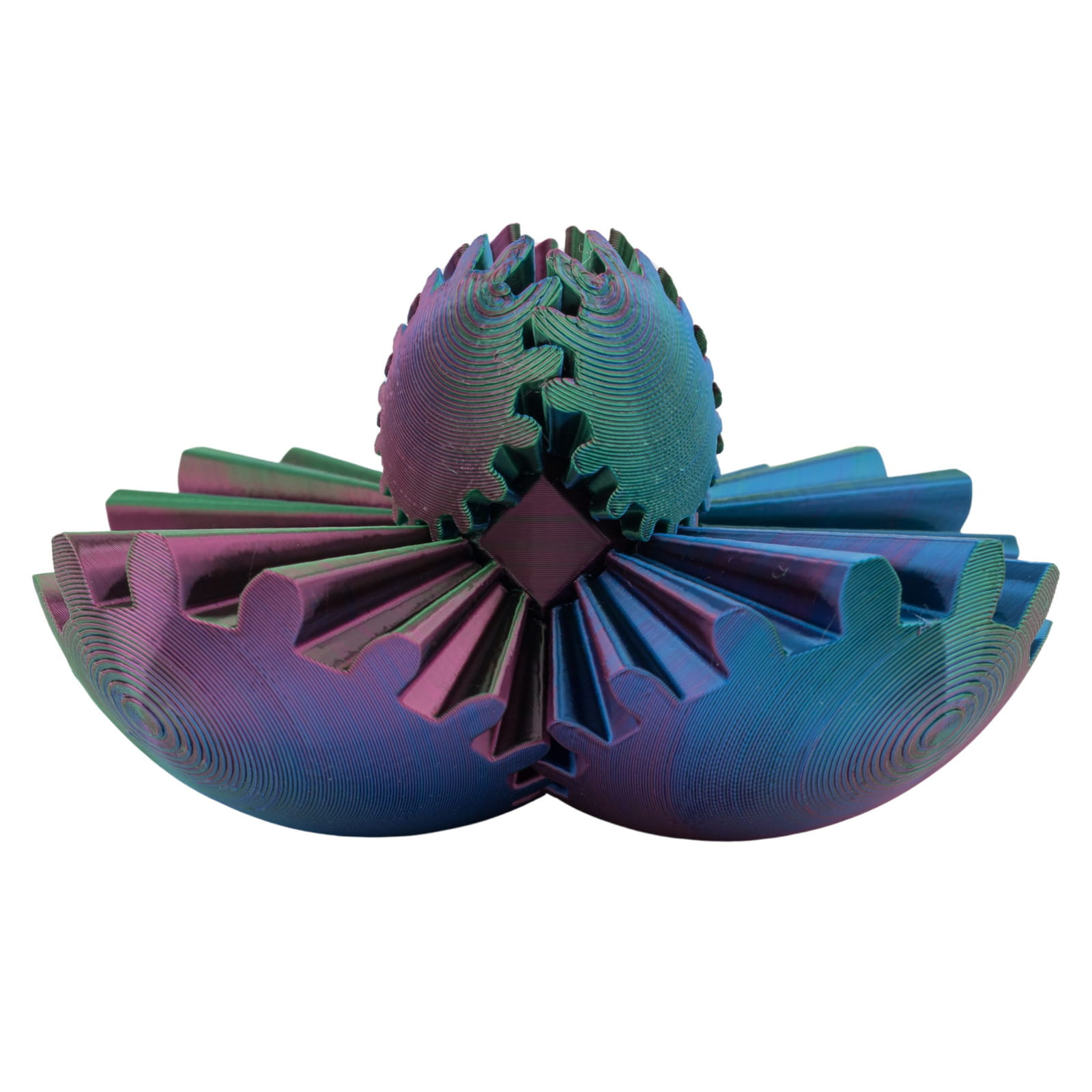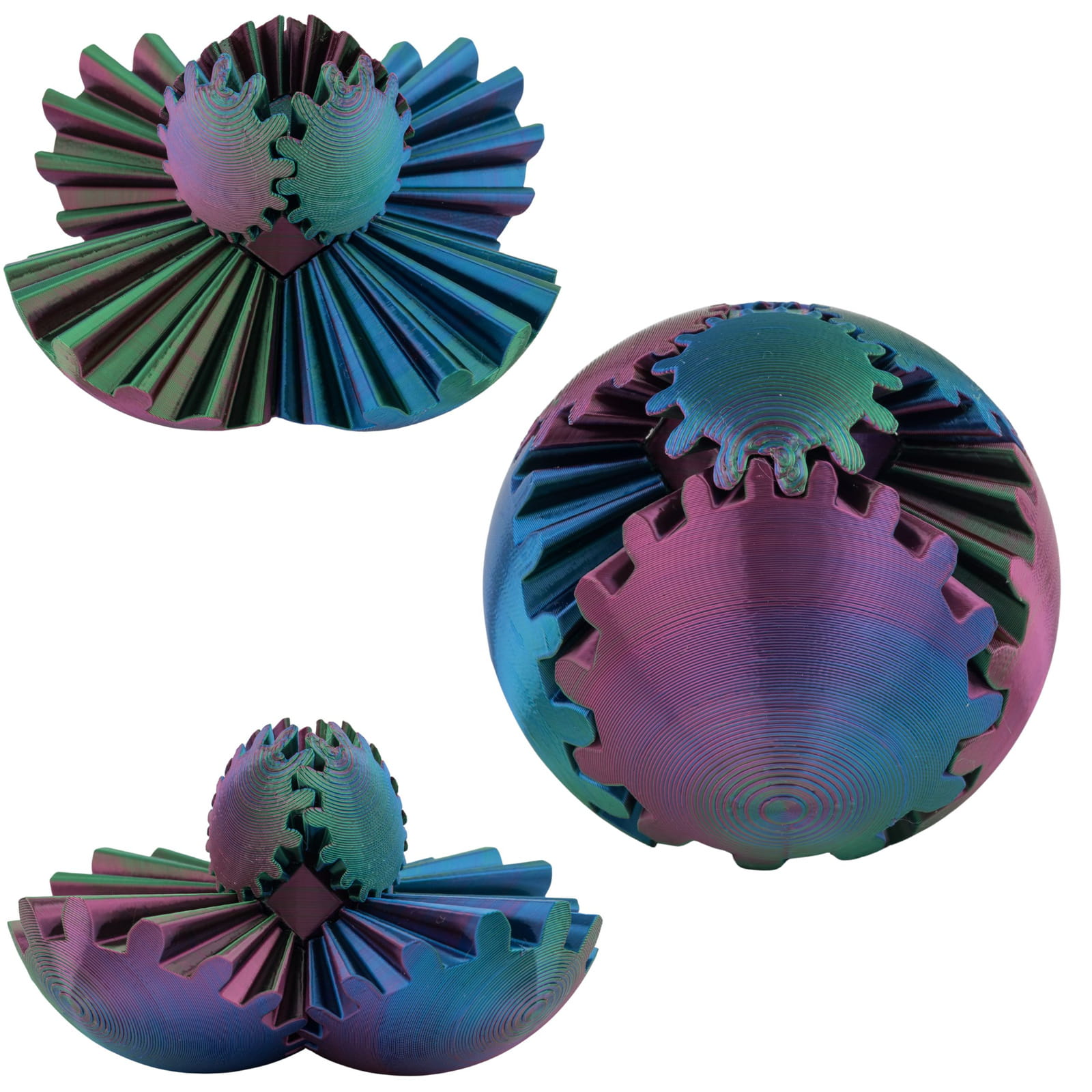 kula 3D zębatkowa, mechaniczna kula antystresowa, gadżet druk 3D, fidget zębatki, łamigłówka techniczna, interaktywna zabawka 3D, prezent dla inżyniera
