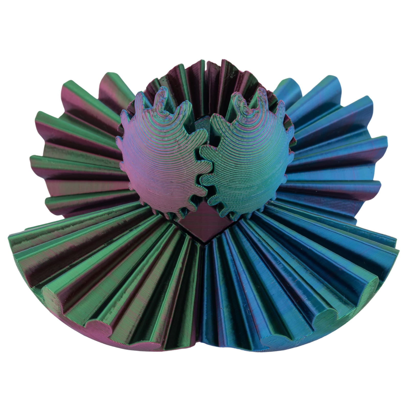 To niezwykły, ręcznie drukowany model z ruchomymi zębatkami, który zachwyca formą i funkcją. Idealna jako fidget, antystresowa zabawka, a także efektowna dekoracja biurka.