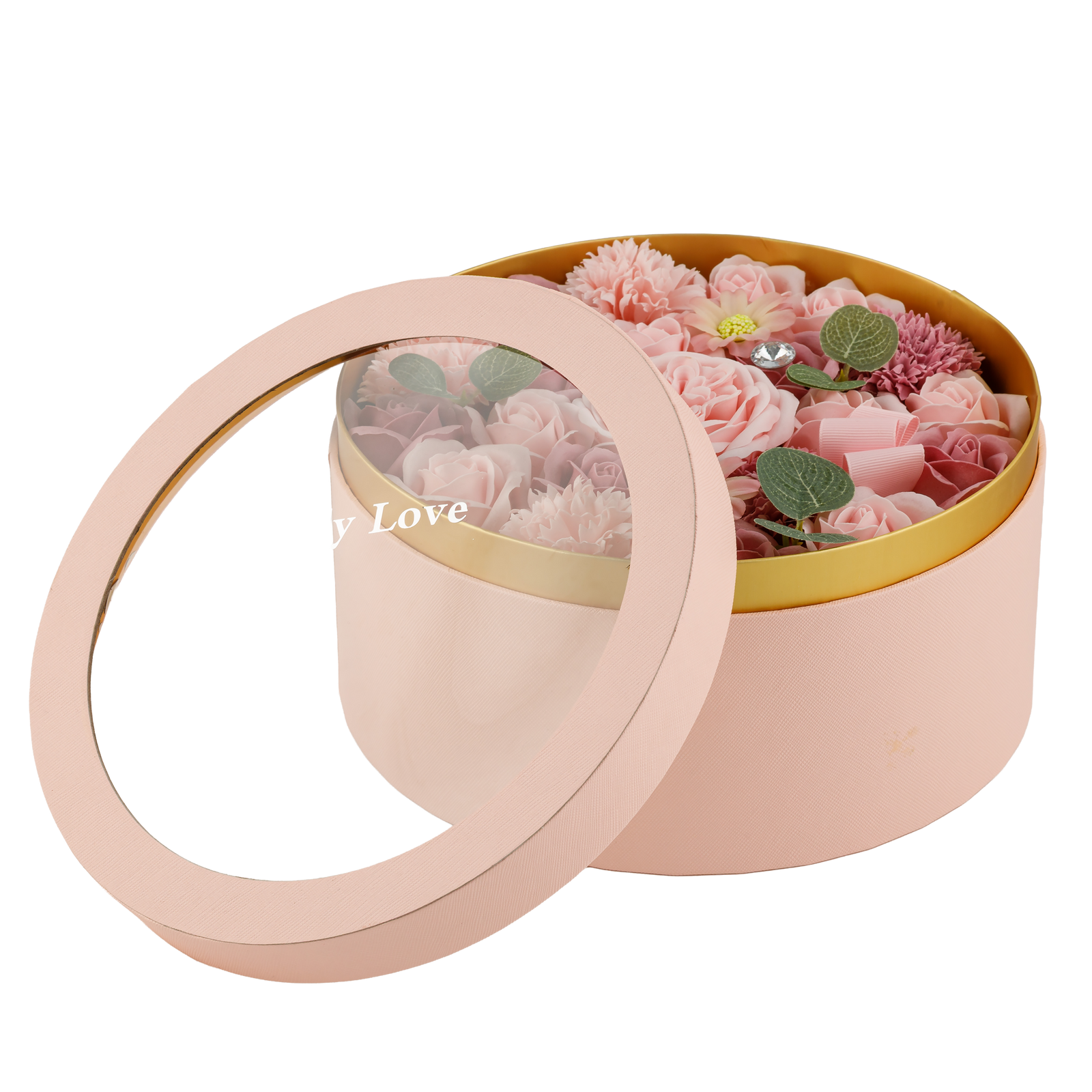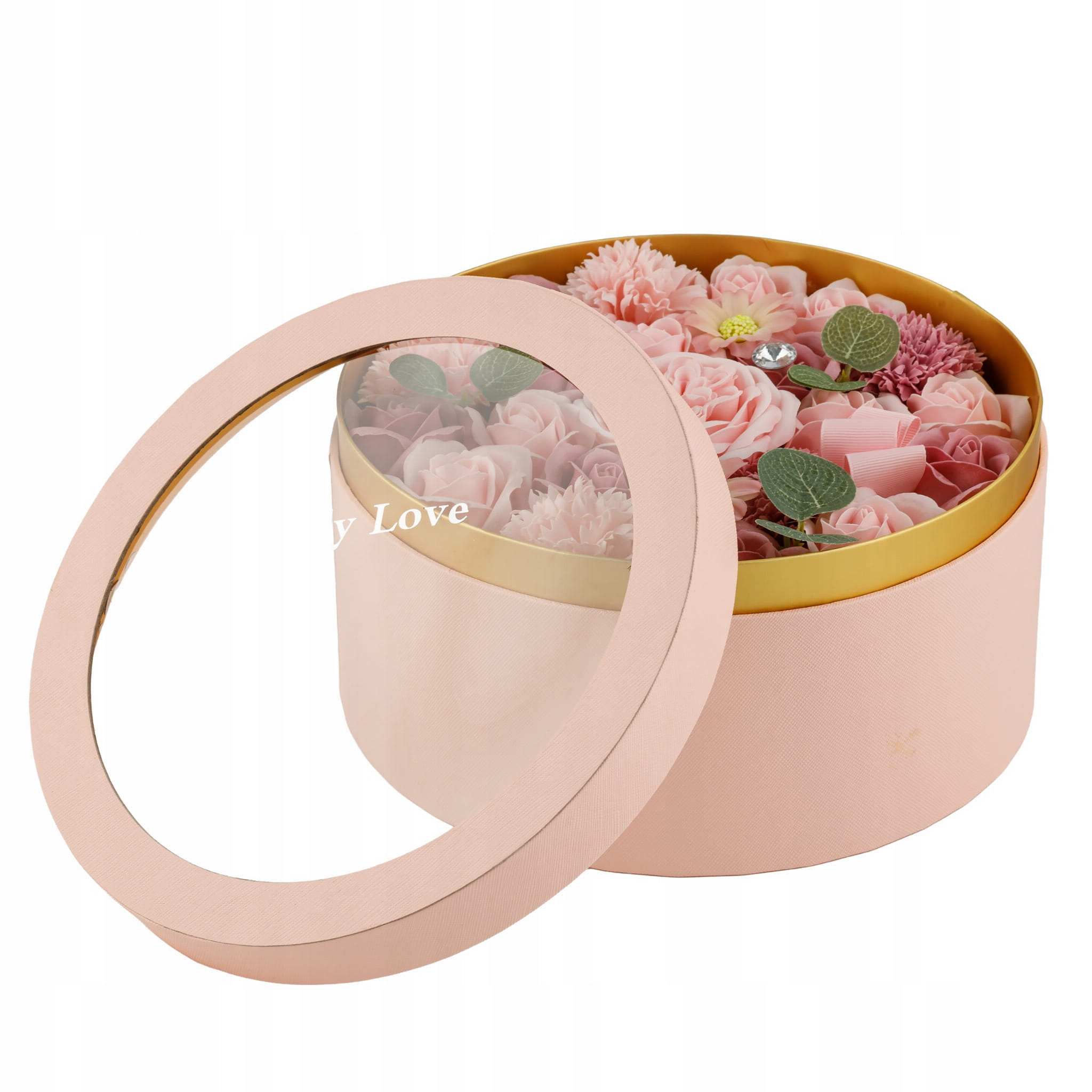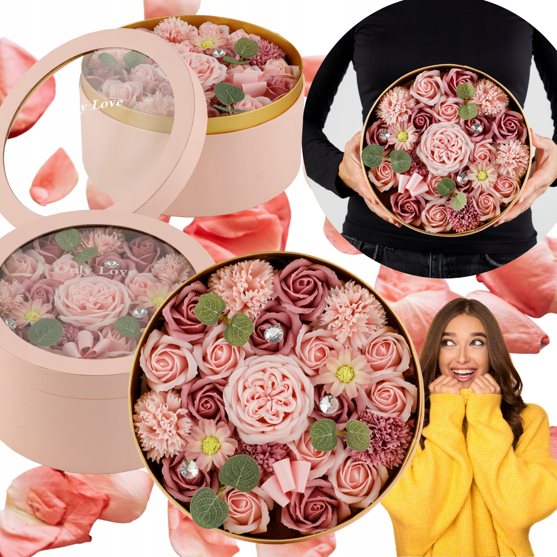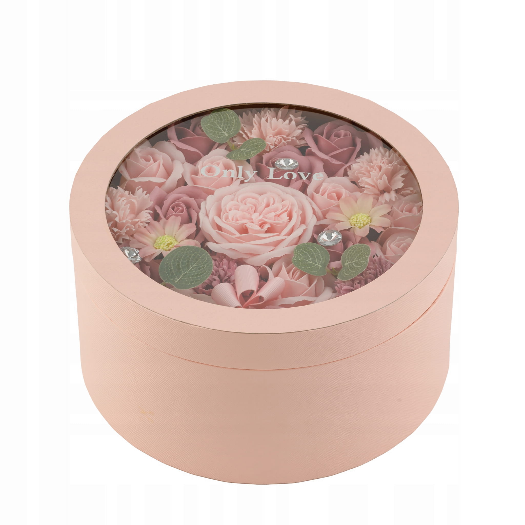 Flowerbox z kwiatami mydlanymi różowymi 24,5 cm – elegancki prezent Only Love