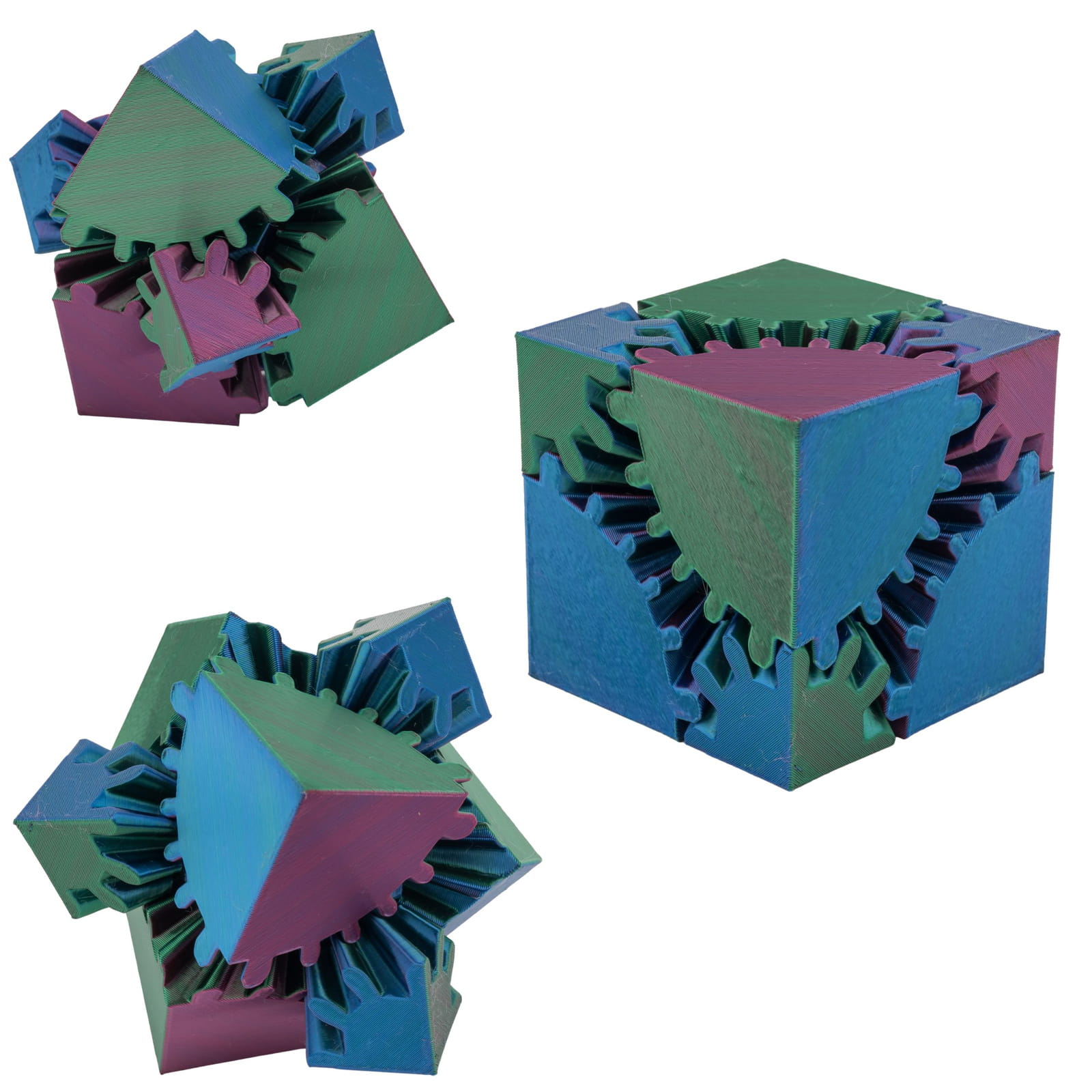To nie tylko zabawka, ale też interaktywny model mechaniczny – wykonany z precyzją metodą druku 3D z wysokiej jakości filamentu PLA. Elementy są ruchome i idealnie zazębiające się, dzięki czemu kostka może zmieniać kształt w hipnotyzujący sposób