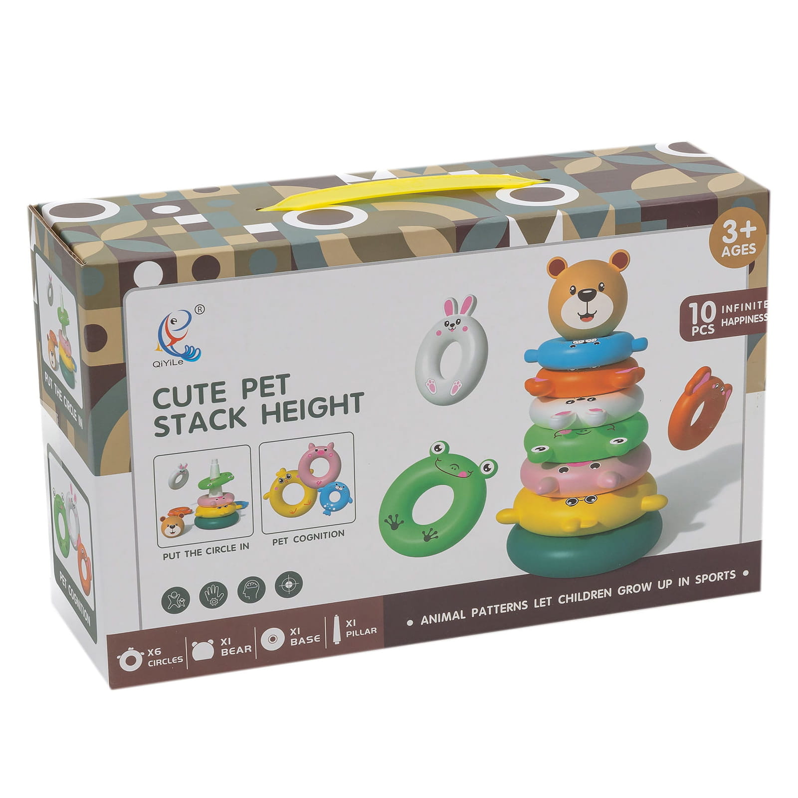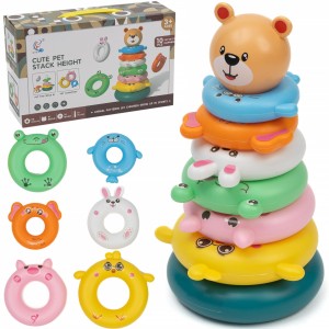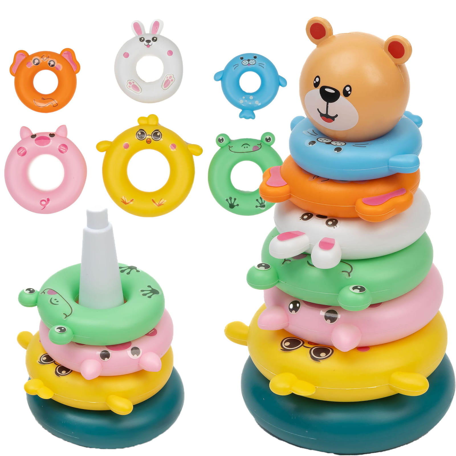 Zabawka piramidka z kółek układanka dla niemowlaka 8 el. zwierzątka