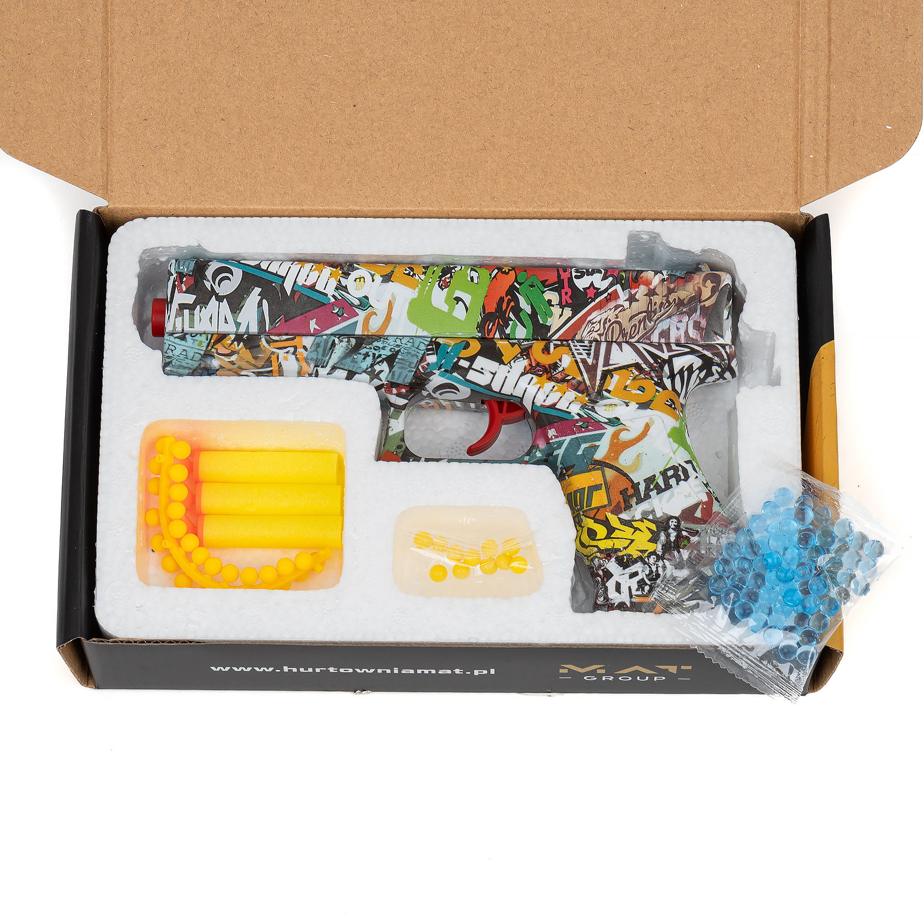 - Opakowanie - Pistolet zapakowany w estetyczne kartonowe pudełko. Idealnie nadaje się na prezent dla każdego małego fana wojska i militariów.