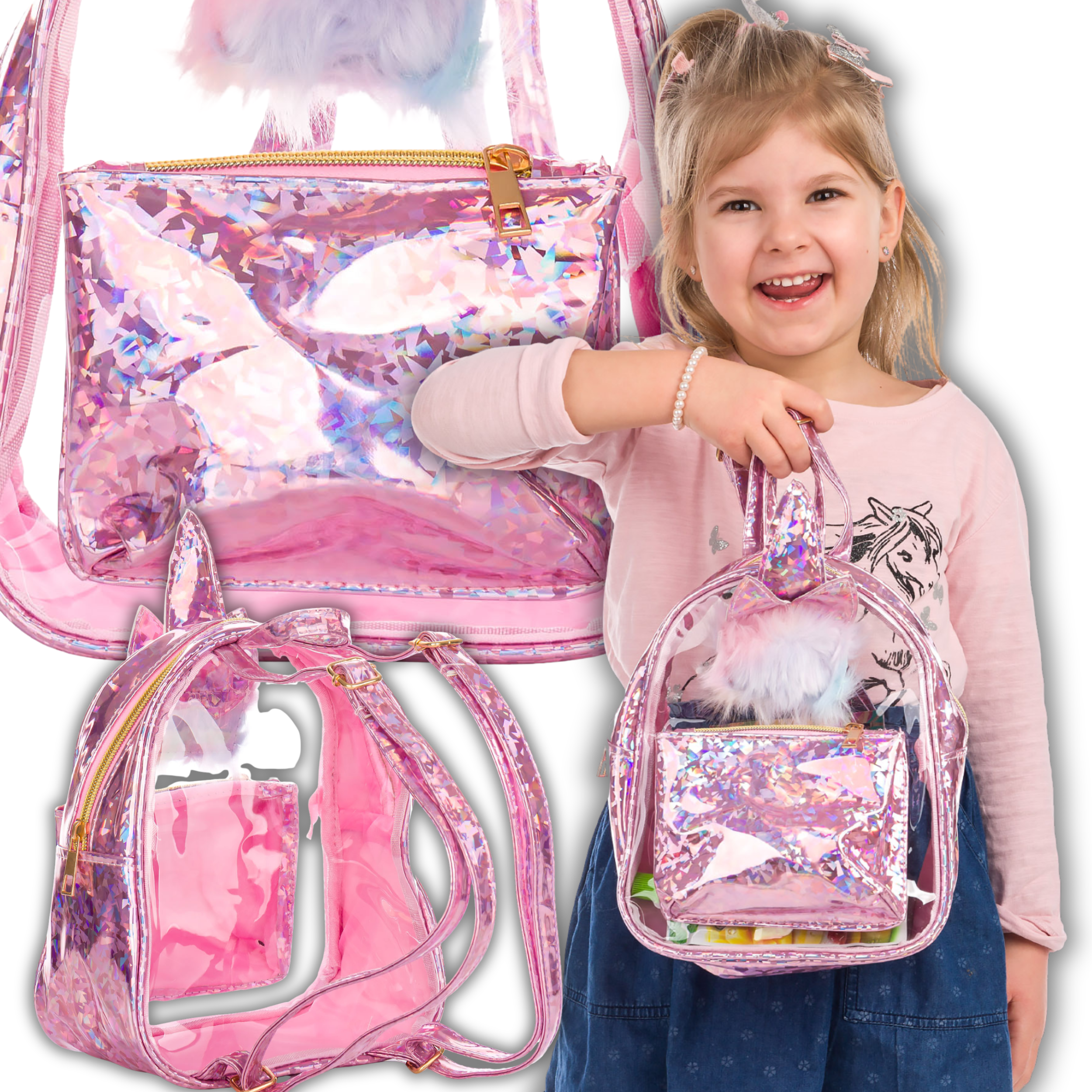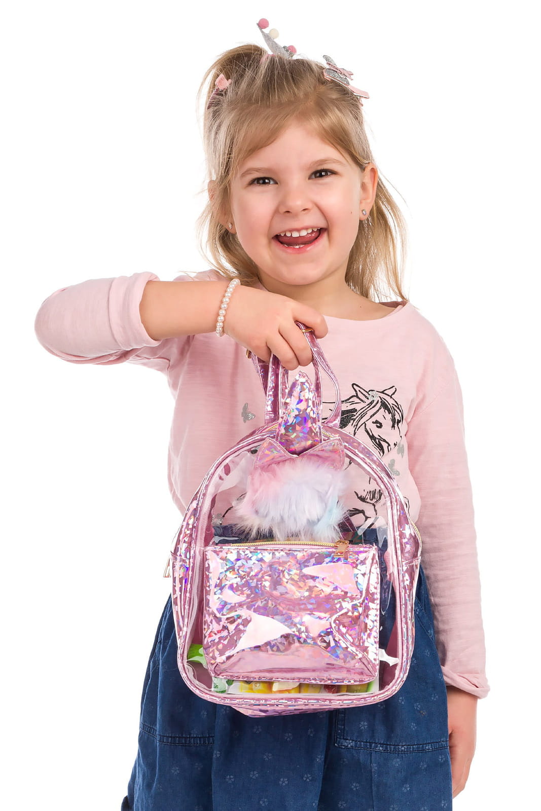 Plecaczek jednorożec, który pokocha każda dziewczynka. Wykonany z bardzo łatwego w czyszczeniu materiału z przewodnim motywem jednorożców - która dziewczynka ich nie kocha. Plecak posiada regulowane szelki, uchwyt do powieszenia oraz dodatkową przednią kieszonkę.