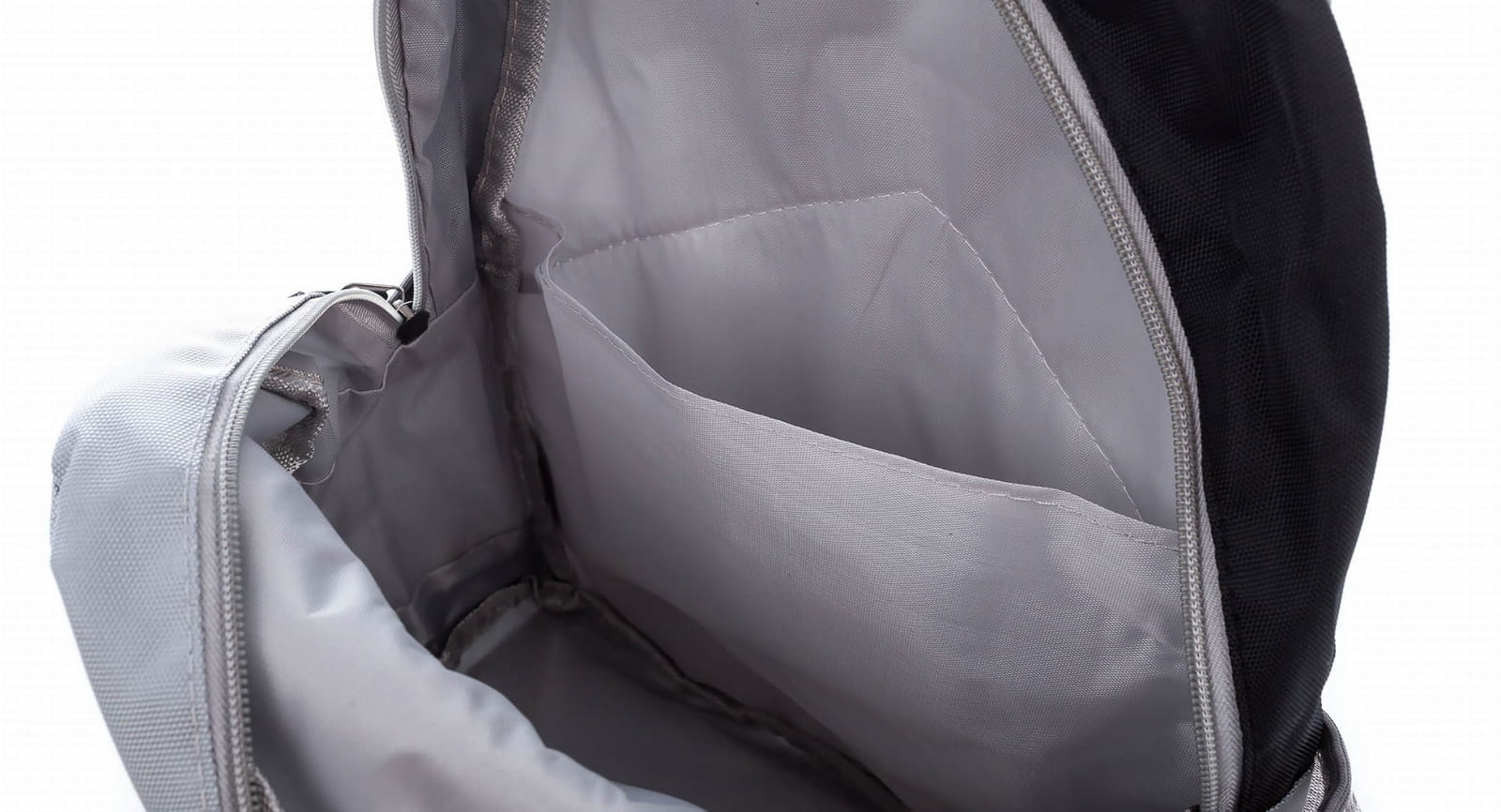 Obszerna komora główna plecaczka, kieszonka wewnętrzna i zewnętrzna oraz boczne z siateczki pomieszczą wszystkie drobiazgi, drugie śniadanie oraz napoje.
