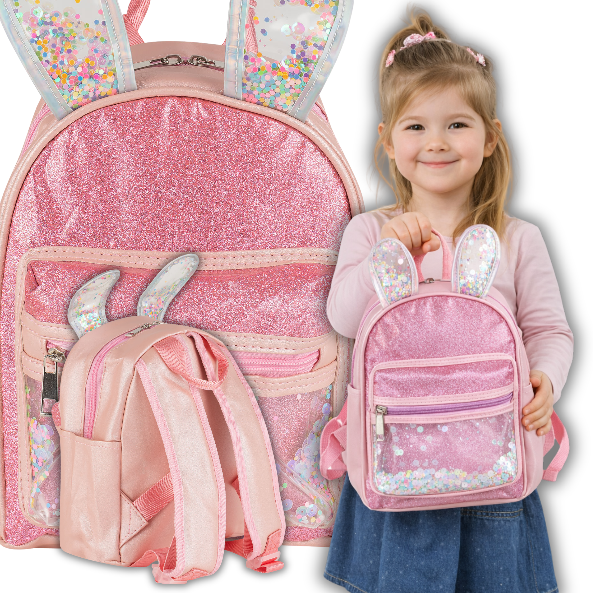 Plecaczek z brokatem z uszkami królika