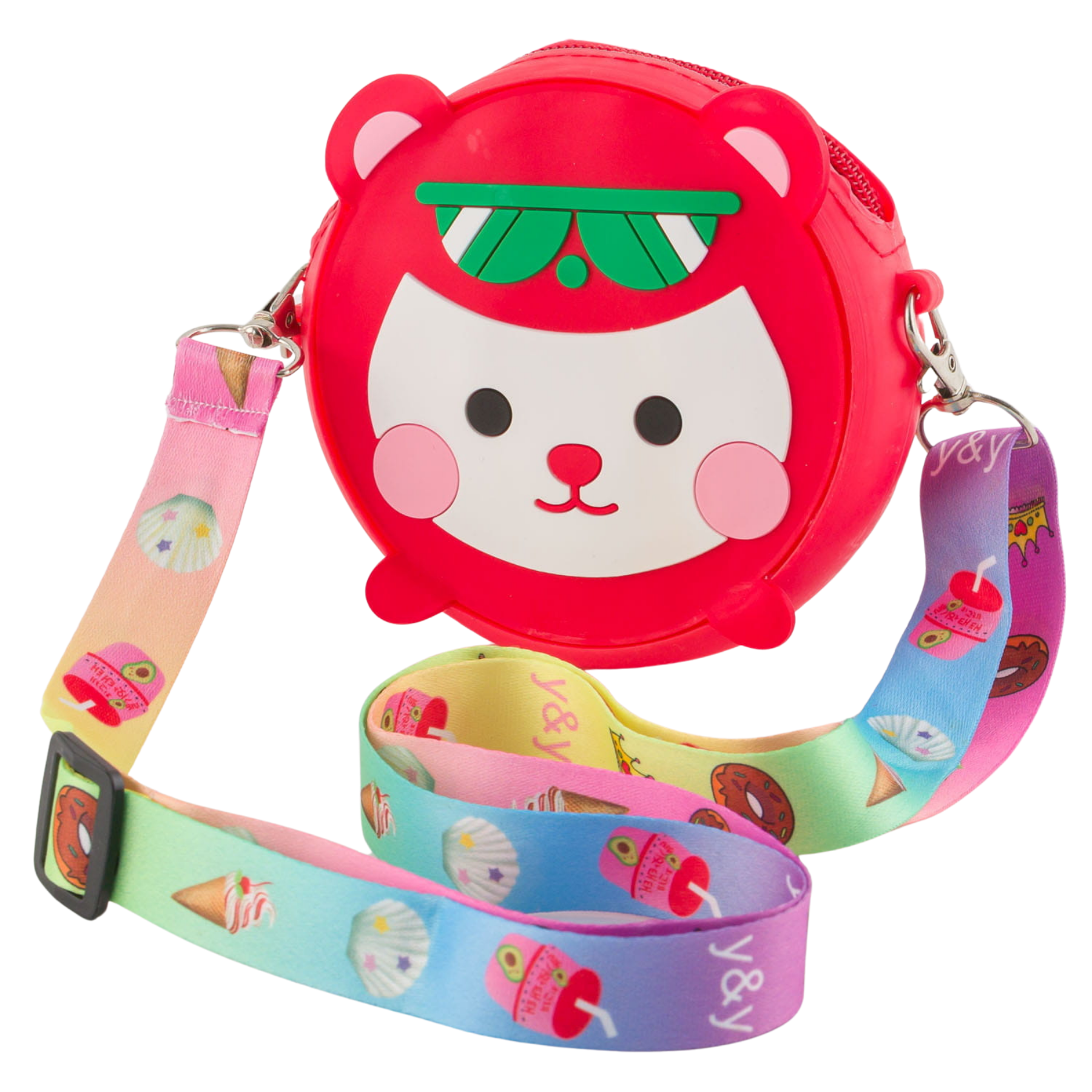 Silikonowa Torebka Dla Dzieci – Uroczy Miś z Kolorowym Paskiem czerowna