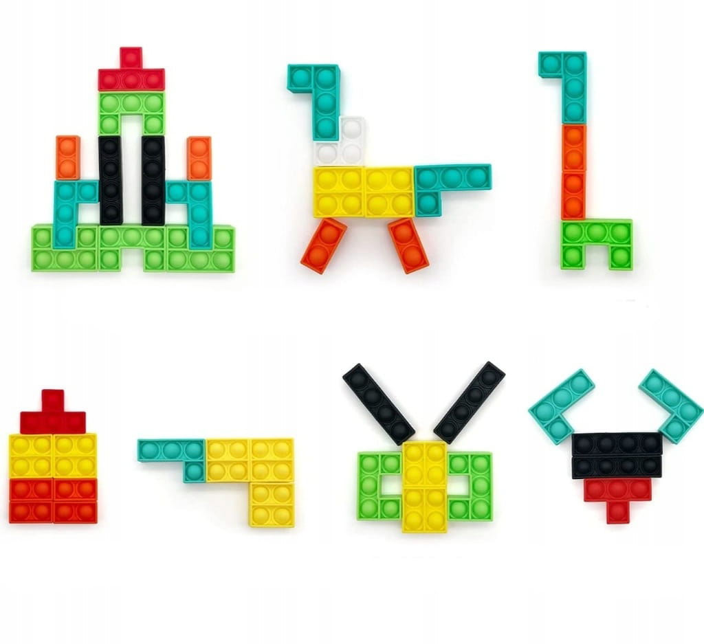 POP IT Tetris to sensoryczna układanka składająca się z 40 silikonowych elementów w kształtach znanych z klasycznej gry. Zabawa rozwija wyobraźnię, uczy logicznego myślenia i wspiera motorykę małą, a przy okazji działa antystresowo i wyciszająco – idealna dla dzieci i dorosłych!