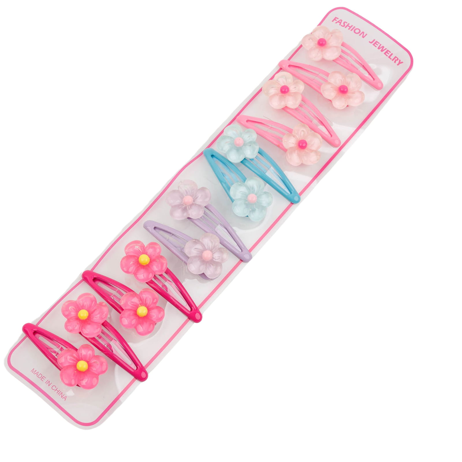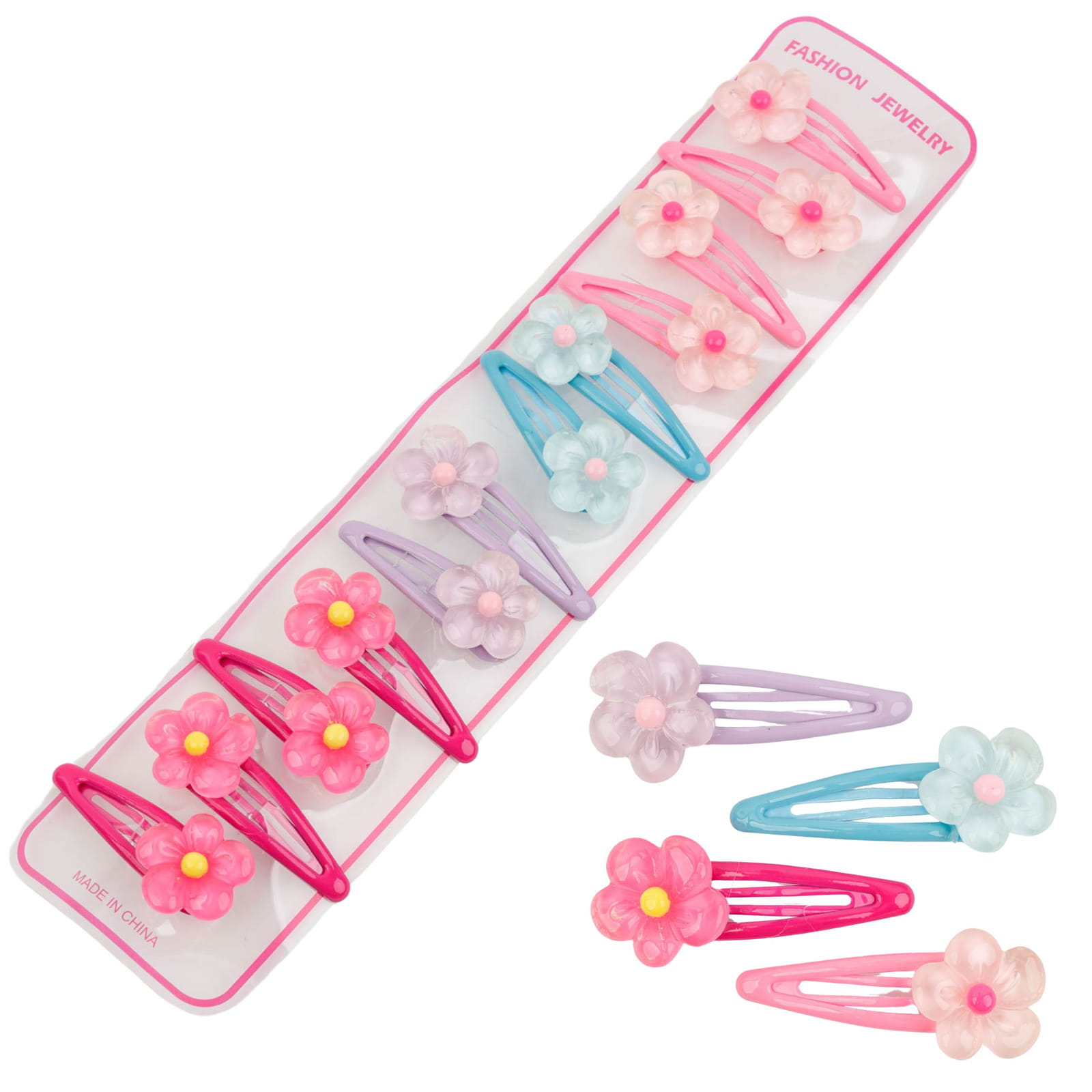 Uroczy zestaw 12 kolorowych spinek do włosów dla dziewczynek w kształcie kwiatków na klasyczny zatrzask typu „pyk”. Idealne jako ozdoba do codziennych fryzur, do szkoły, przedszkola czy na specjalne okazje. Spinki są lekkie, wygodne i bezpieczne – nie ciągną włosów i dobrze się trzymają. Doskonałe także na prezent!