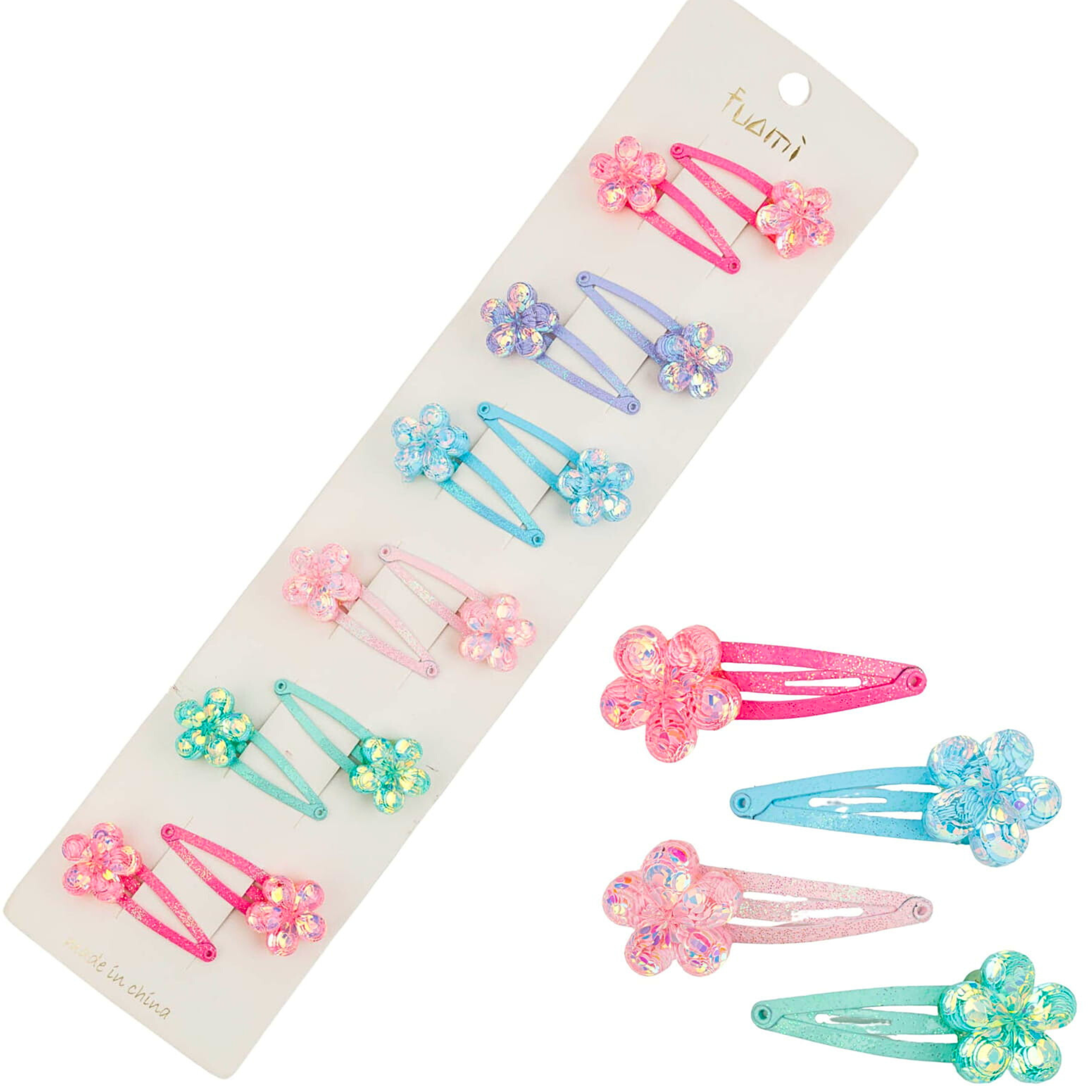 Uroczy zestaw 12 kolorowych spinek do włosów dla dziewczynek w kształcie kwiatków na klasyczny zatrzask typu „pyk”. Idealne jako ozdoba do codziennych fryzur, do szkoły, przedszkola czy na specjalne okazje. Spinki są lekkie, wygodne i bezpieczne – nie ciągną włosów i dobrze się trzymają. Doskonałe także na prezent!