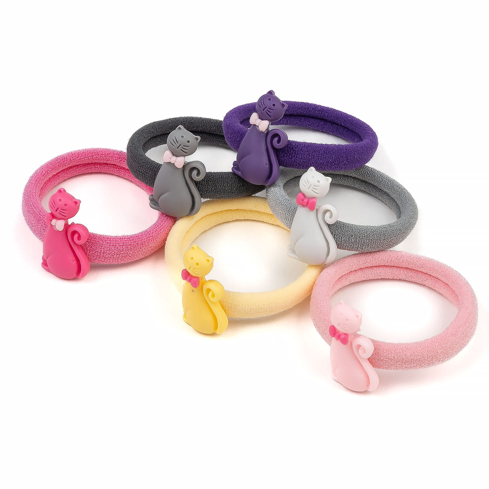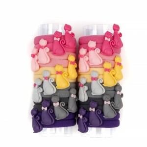 Zestaw 24 gumek frotek do włosów z kotkiem – kolorowe elastyczne gumki dla dziewczynek i kobiet