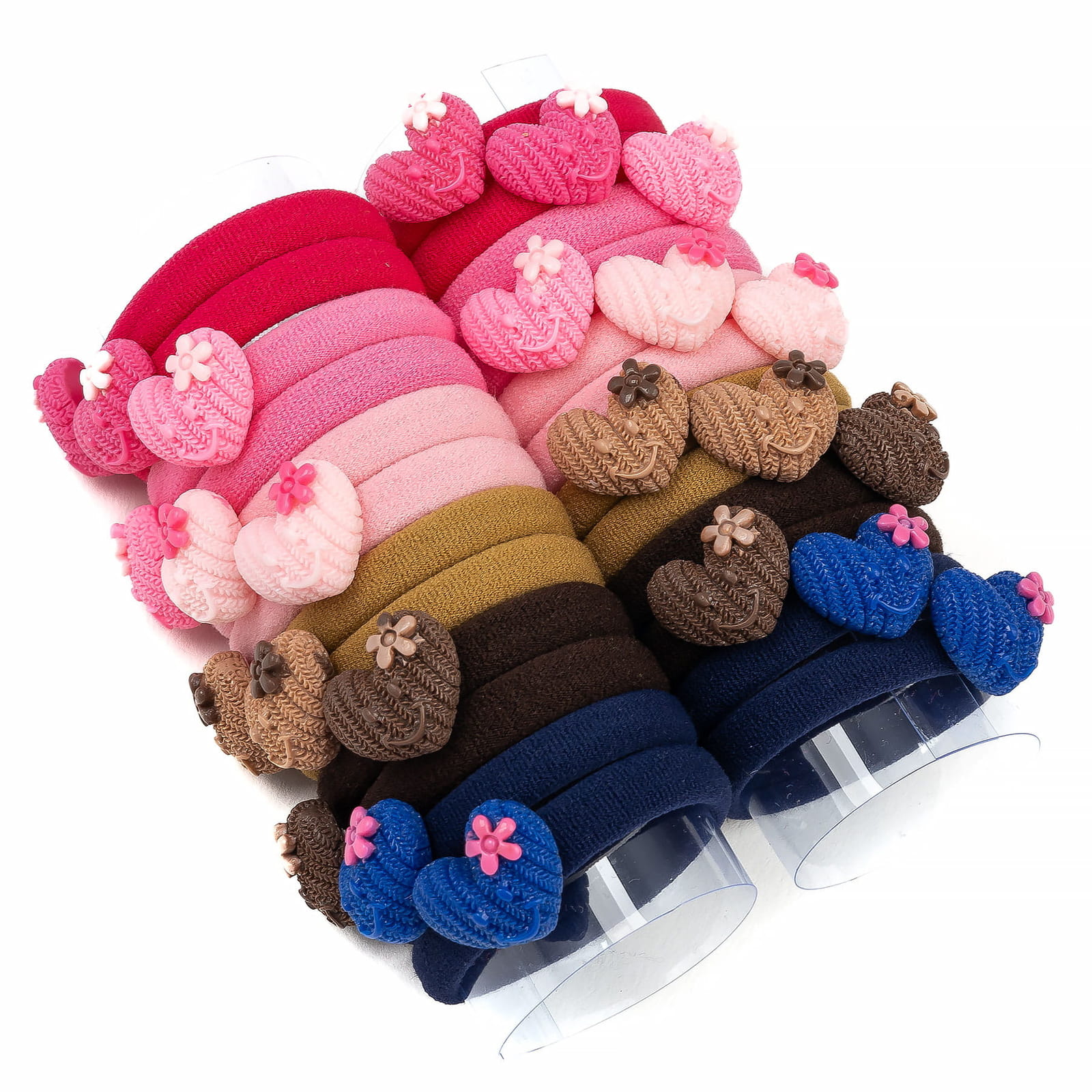 gumki frotki z ozdobą, gumki do włosów serce, zestaw gumek dziecięcych, gumki z kwiatkiem, ozdoby do włosów dziewczęce, elastyczne gumki do fryzur, kolorowe gumki z dekoracją