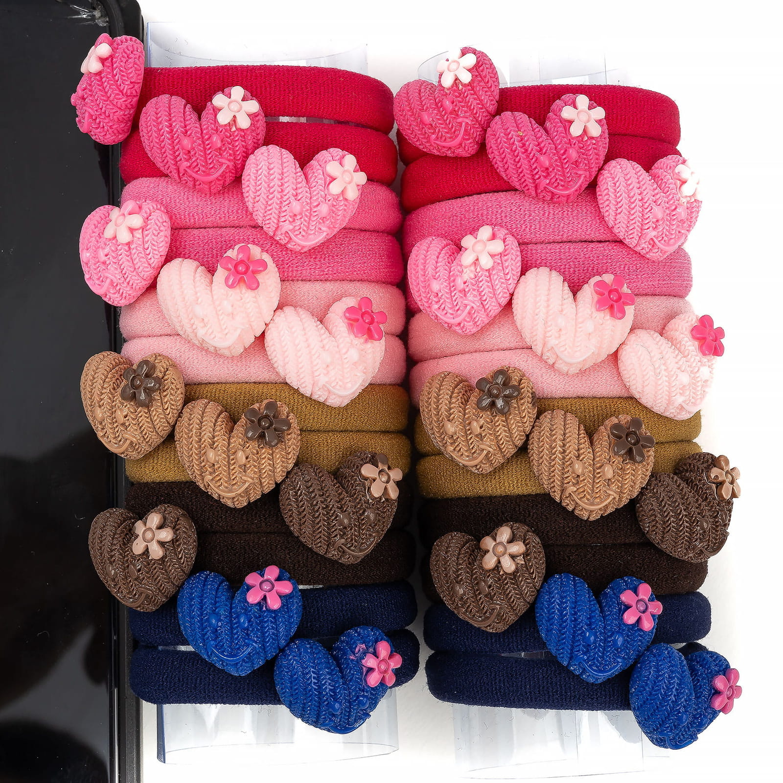 Zestaw 24 gumek frotek do włosów z serduszkiem i kwiatkiem – kolorowe elastyczne gumki dla dziewczynek i kobiet