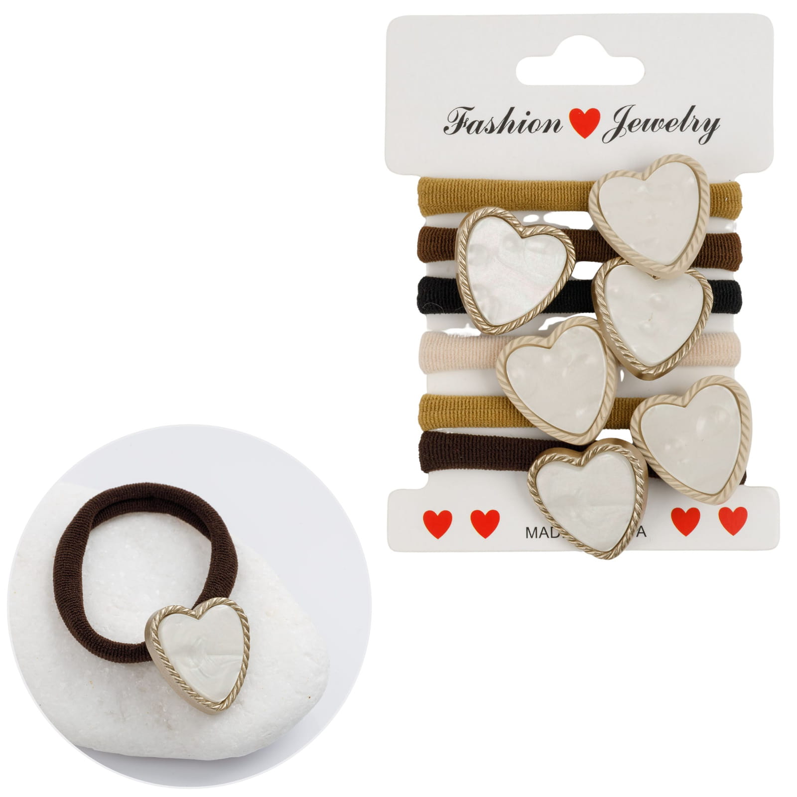 gumki do włosów z sercem, zestaw gumek frotek, gumki ozdobne, gumki dla dziewczynek, gumki damskie, gumki eleganckie, frotki z dekoracją, gumki z zawieszką, gumki brązowe, gumki perłowe