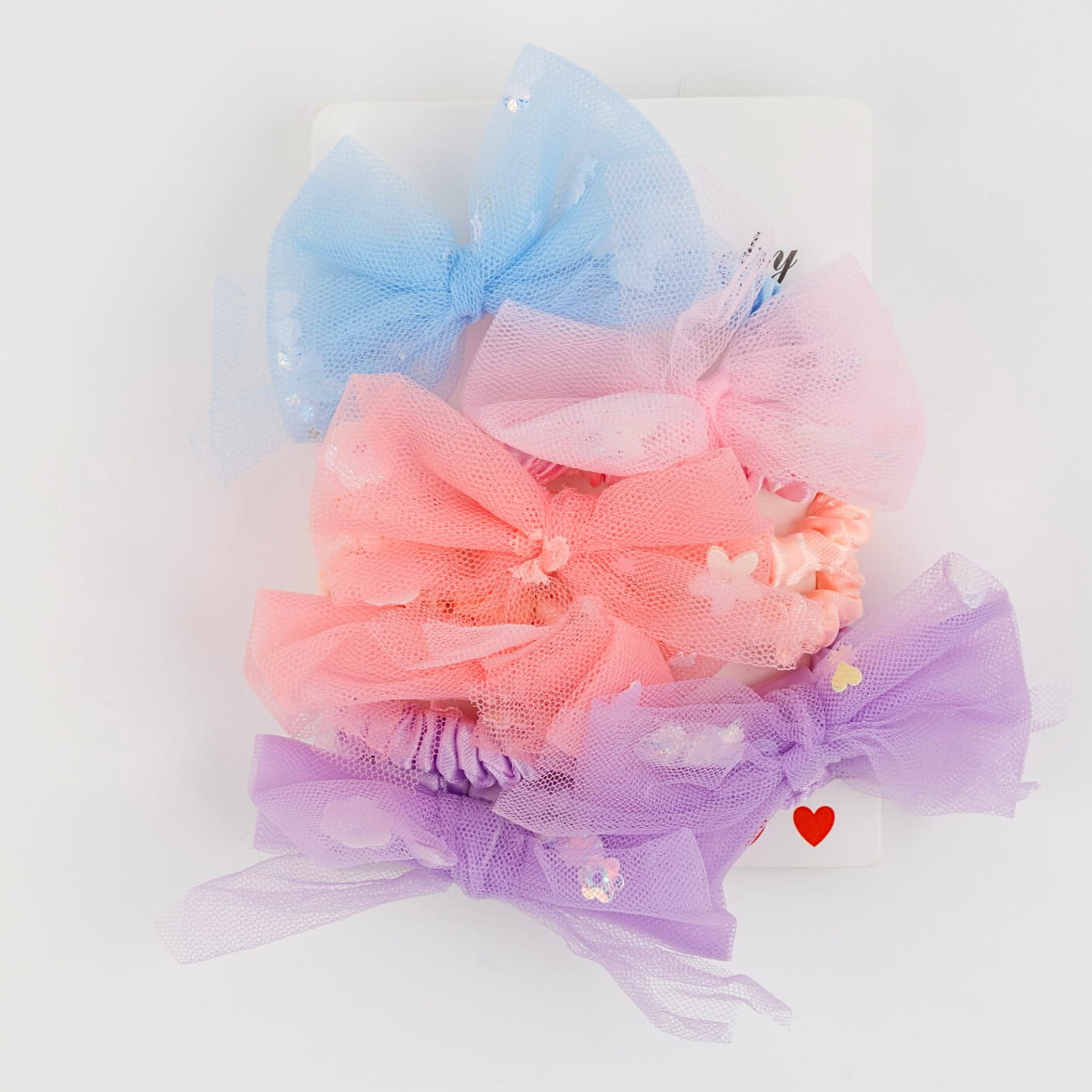Producent MAT GroupZestaw 6 pastelowych gumek frotek z kokardką w serduszka – tiulowe gumki do włosów dla dziewczynek