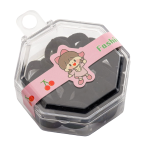 Czarne, miękkie gumki do włosów zapakowane w praktyczne pudełeczko.