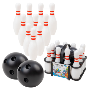 Kompletny zestaw do gry w kręgle z dwoma kulami.
